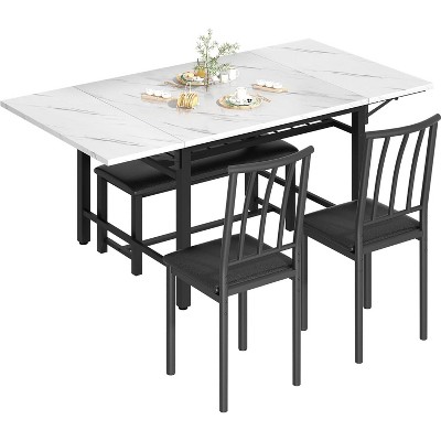 - SPACE SAVING: Our dining table and chairs feature a space-saving design, when the table is not in use, the chairs can be placed underneath the table, which saves space in aisles and hallways. The spacious table top can provide you with a lot of space for placement, you can also use the table to stack some items, so it can be easily placed in the kitchen, dining room or anywhere without taking up too much of your space.