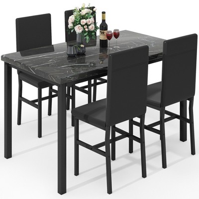 Hooseng 5-piece Kitchen Table and Chairs, Dining Table Set for 4, Rectangular Dining Table Set with Four Chairs and Marble Top for Dining Room