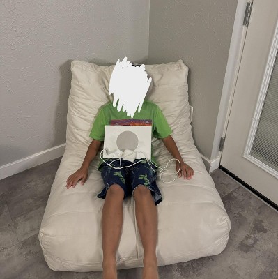 I liked how easy it was to set up this bean bag, Lots of waiting since it is so big! It was delivered as a large ( and heavy) vacuumed packed cube.