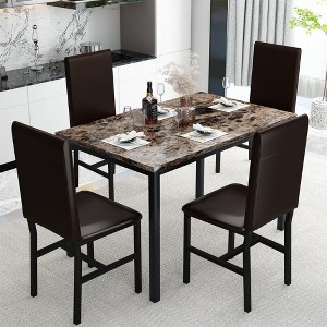 - Upgraded upholstered cushion: The four matching contemporary chairs are constructed with comfortable padded seat cushions and light brown PU leather upholstery, ergonomic backrest, and black sturdy metal legs that match the elegant faux marble tabletop