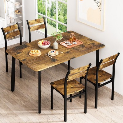 Hooseng Industrial Style 5-Piece Dining Table Set, Dining Room Table Set with 4 Slated Backrest Chairs, Space-Saving Dinette Set for 4 with MDF Top