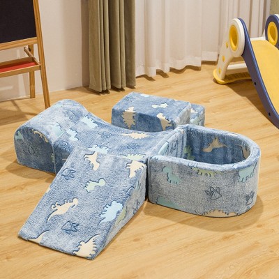 This 5-in-1 modular kids’ play sofa set combines climbing blocks (5 designs: slope, bassinet, arched bridge, gate pillar, and steps) — perfect for practicing crawling/walking, and also works as a cozy couch.