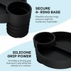 Perfect for little ones on the go, this toddler snack tray turns booster seats into moving snack stations. Keep your kiddo happy with their favorite snacks, no matter where the day's journeys take you. Guaranteed to fit 98% of car seats and booster seats. Made from 100% silicone with a secure 4-ring base, this car tray for kids is designed so it won't slip out of the cup holder, as family road trip essentials for storing snacks while the vehicle is in motion or going over bumpy surfaces. Prioritize health with our dishwasher safe, chemical-free, easy-to-clean car seat snack tray cup holder. BPA free silicone material is soft and safe for everyone, including babies and seniors. Snack without limits, from the driveway to the highway!