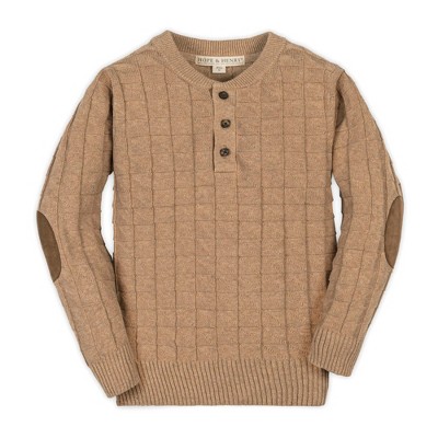 Boys' Organic Long Sleeve Henley Pullover Sweater with Elbow Patches, Kids