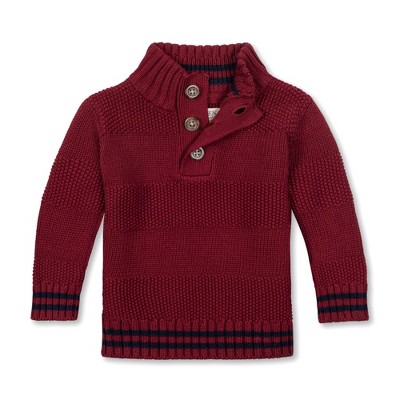 Our plush mock neck sweater in soft organic cotton lends an instantly polished look to your boy for all the activity that cool weather brings. Features a beautiful chunky cardigan stitch, rib trim, and a button placket with faux suede detail. Pairs perfectly with our collection of organic cotton button downs.