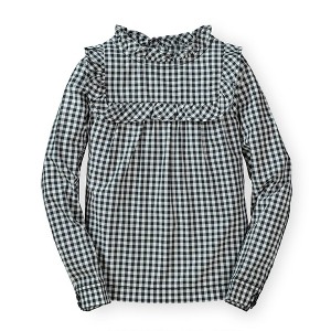 Product Name: Hope & Henry Girls' Ruffle Yoke Blouse (Black & White Buffalo Plaid, 3-6 Months)