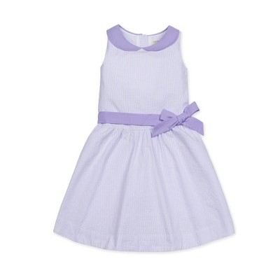 Product Name: Hope & Henry Heirloom Girls' Organic Sleeveless Special Occasion Sundress with Bow Back Detail and Embroidery, Blue Seersucker, 5