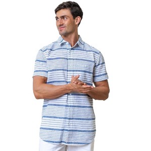 Product Name: Hope & Henry Men's Short Sleeve Linen Button Down Shirt, Dark Blue Variegated Stripe, Small