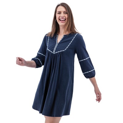 The epitome of effortless chic. Our sophisticated sweater dress in soft organic cotton exudes timeless charm. Features a sweater knit contrast collar, gold button details at the cuffs and center front keyhole closure, and an easy to wear silhouette.