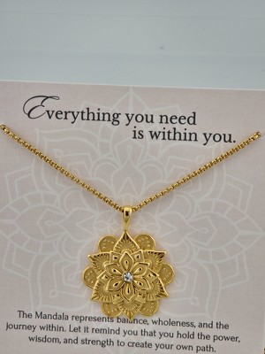 Thoughtful gift ideas if you are looking for: affirmation mandala necklace gold, spiritual gifts for women, hope necklace gold, positive affirmation jewelry, gold mandala necklaces for women, charm necklace spiritual women, necklace for strength and healing.