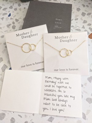 HOPE LOVE SHINE Mother Daughter Necklace 2 interlocking circles Gold – Meaningful Gift for Mom, Jewelry for Mom and Daughter