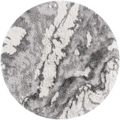 Horizon Shag HZN894 Power Loomed Indoor Area Rug - Grey/Ivory - 5' Round - Safavieh