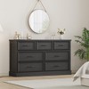 Organize your space with this versatile farmhouse dresser! Featuring seven spacious drawers and a solid wood frame, it offers ample storage for clothes, toys, or media essentials. Measuring 55"W x 15.9"D x 32.3"H, its clean design works as a bedroom dresser, nursery organizer, living room TV stand, or entryway console. Easy to assemble and finished in a crisp white, it brings style and function to any room.