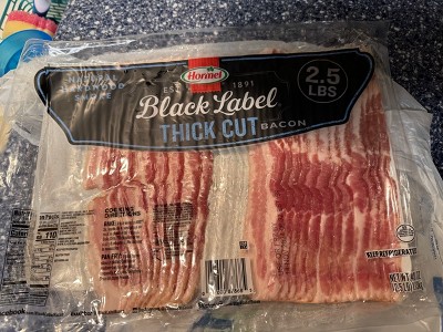 I bought the black label thick cut bacon. It was definitely NOT thick cut. This was the smallest flimsy bacon ever. I was very disappointed in this product.