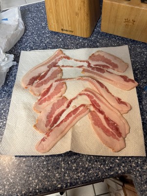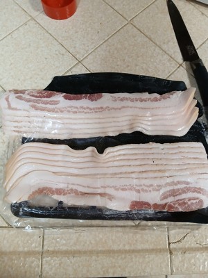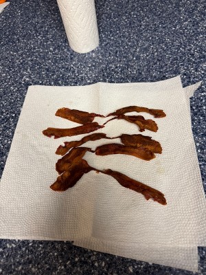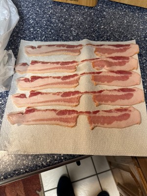 All I wanted to do is make a sandwich I opened up the package went to peel it apart and it like it just broke up in the little pieces. I reached out to the company told him I had pictures. It's like it went through a shredder.. of course no response. We just take your money we don't care. I'd rather pay five dollars more and get a decent piece of bacon. It doesn't break apart while you're trying to peel from the other pieces and come up with maybe a 3 inch piece of bacon with little bits of pieces all over the pan because like I said, it just isn't a salad piece of bacon. I wouldn't buy it again. I wouldn't recommend it but it does taste good that's about it though.