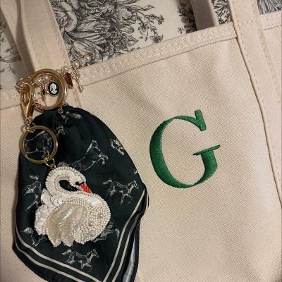 A: The bag charm features a lobster claw clasp closure for easy attachment.
