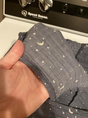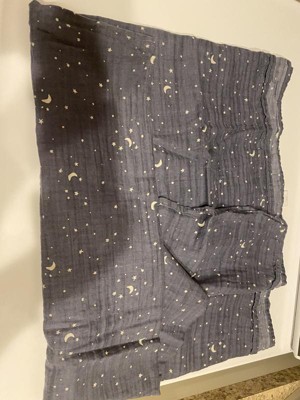 Welcome the newest family member with this Hospital Muslin Swaddle and Hat Gift Set - from Cloud Island™. This two-count set includes a 47-inch square swaddle blanket and a pull-on beanie hat to keep the little one warm all day and night. Decorated with white stars and crescent moons on a dark blue background for a magical look, both items in the set are made of 100% cotton and are machine washable for easy use and convenient cleaning.