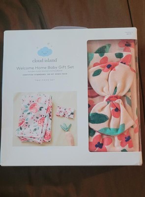 Hospital Muslin Swaddle Baby Blanket and Headband Gift Set - Floral Blooms - 2pk - Cloud Island™