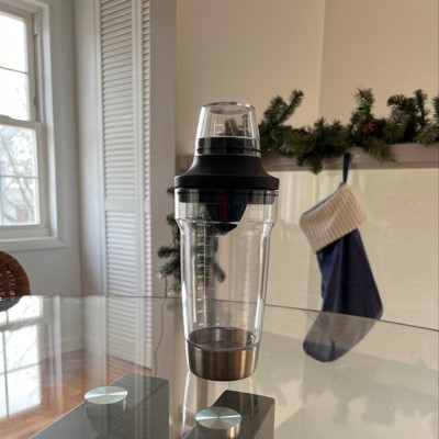 HOST All in One Cocktail Shaker Set|5 in 1 Tool - Jigger Cap|Strainer|Reamer|Stainless Steel Bottle Opener and Oz and mL Markers 18 oz Capacity, Clear