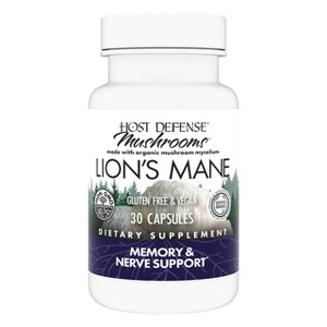 Explore the numerous health benefits of mushrooms with Host Defense Lion's Mane. Powered by organic mushroom mycelium, each vegan capsule supports focus, memory, and cognition. Our Lion's Mane mushroom supplement supports brain health and function, nervous system function, and immune system health. Lion's Mane, known as ""The Smart Mushroom,"" is long-renowned for supporting the nervous system, for those seeking cognition, memory, and mood support. Whether you're a professional looking to find your focus, a student aiming to support your study sessions, or simply seeking to aid your memory, Lion's Mane is a thoughtful addition to your daily regimen.*