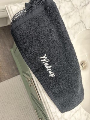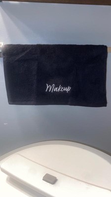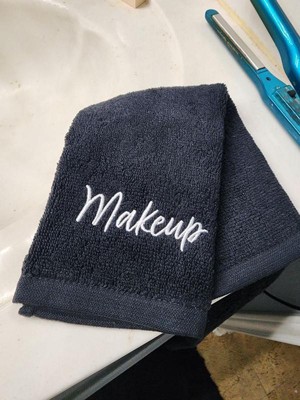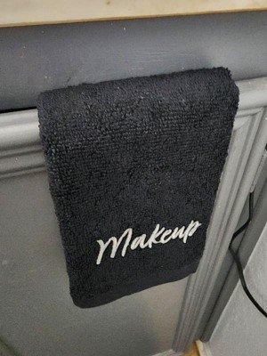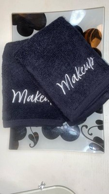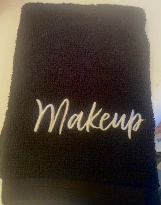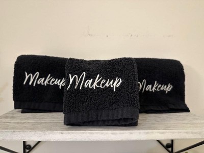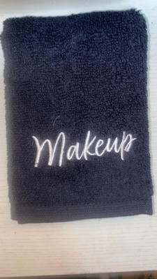 - KEEP YOUR WHITE BATH TOWELS WHITE: Save your white towels from makeup stains with cotton makeup removal fingertip towels and washcloths. Wash black makeup towels separately and keep white towels stain-free. The charming printed embroidery reads �Makeup� in a lovely cursive font. Makeup removal fingertip towels are a pretty, functional accent for the bathroom.