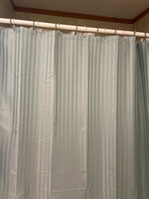 - PREMIUM SHOWER CURTAIN SET: This premium shower curtain set features a regal solid color damask style. The damask weave gives the illusion of a subtle two-tone stripe. Choose from four beautiful spa-inspired colors to enhance your bathroom decor and freshen up your style. A weighted hem, 12 rust-resistant rolling shower rings, and strong rust-resistant metal grommets are included.