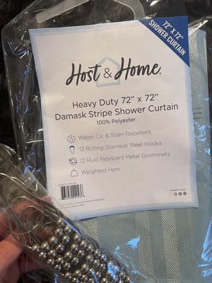 - PREMIUM SHOWER CURTAIN SET: This premium shower curtain set features a regal solid color damask style. The damask weave gives the illusion of a subtle two-tone stripe. Choose from four beautiful spa-inspired colors to enhance your bathroom decor and freshen up your style. A weighted hem, 12 rust-resistant rolling shower nd strong rust-resistant metal grommets are included.