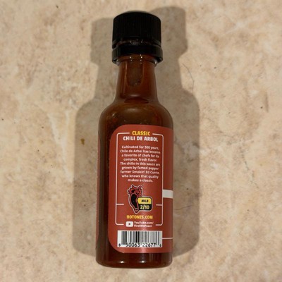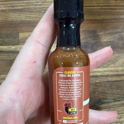 - Mild, 2/10 heat from chile de arbol peppers grown by Smokin' Ed Currie