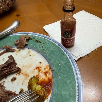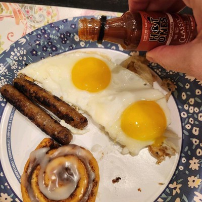 [This review was collected as part of a promotion.] Hot Ones Original The Classic Hot Sauce is delicious! Just the right amount of zing. I used it on my fried eggs when we had Brinner (breakfast for dinner) and it gave it the perfect amount of heat. It has heat, followed by a great vinegar taste. I look forward to adding it to scrambled eggs, red beans and rice with sausage, chili, or pulled pork nachos. The only drawback is the size--it's less than 2 ounces. This would make it a perfect purse hot sauce, but it has to be refrigerated after opening, so that's out of the question.