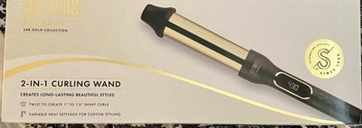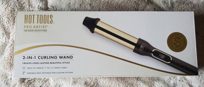 Pro Artist 24K Gold 2 in 1 Curling Wand - Get creative with Hot Tools new Pro Artist 24K Gold 2-in-1 Curling Wand. Two barrels in one let you create and customize your curls & waves with one convenient wand. One twist and the size changes from 1-1/2" to 1" and back! Benefits 24K Gold Barrel: This versatile gold curling iron and wand is the tool of choice for professional stylists. Barrel helps you create tousled curls Features Long-Lasting: Go for the gold for gorgeous curls. Heats up quickly and holds heat evenly. That means faster styling and locked-in results Versatile Styling: Whether you choose to use as a traditional curling iron or wrap hair around the barrel to use as a wand All Hair Types: A high heat reach of up to 430 F provides beautiful results for all hair types from thin to coarse and in between Easy Storage: Enjoy free range movement with 8ft of a tangle free swivel cord - Pro Artist 24K Gold 2 in 1 Curling Wand.
