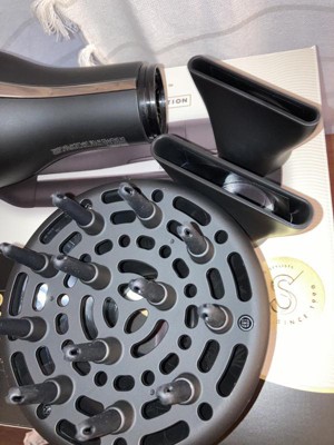 [This review was collected as part of a promotion.] This hair dryer has so many different settings and customizations. I love how the multiple settings make this dryer great for many different hair types and textures. It comes with 3 different attachments, it has a large nozzle, narrow nozzle and a diffuser attachment. I use the diffuser attachment to define my curls and set my hair style and the narrow concentrator to blowout my hair. The diffuser attachment dries my wash n go and adds volume to my curls. When I use the narrow concentrator, it smooths my hair cuticles and gives me a sleek blow out. This dryer has many different heat settings and speeds. The heat settings range from low speed/low heat setting to high speed/high heat setting. This hair dryer is powerful and can get very hot. It has ionic technology and the ergonomic design gives increased airflow and allows for my hair to dry faster. I don't have to spend a long time drying my hair. It also has a 9ft cord which is great because it allows for a lot of reach and movement. Overall I love this hair dyer and I think that it is high quality with great design and functionality.