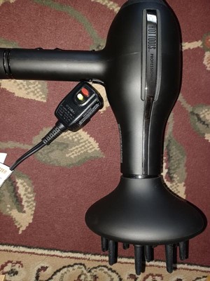 [This review was collected as part of a promotion.] You are going to be impressed with the quality of the HOT TOOLS Pro Artist blow-dryer. This is like having a real professional quality blow-dryer in you home. This blow-dryer comes with 3 attachments. ( small and large concentrator and a diffuser with rubber knobs, no more painful plastic pokes) Allowing you to achieve any style you want. It has a 9 ft long cord. No more limits and being limited by standing by an outlet. It has a hanging hook for easy storage. You can detach the back to clean the filter/air vent. There is 3 speeds with 4 heat settings allowing comfort for anyone. Cold shot and turbo. Your hair will dry faster and easier then ever before. The buttons are located on the back (palm side) of the dryer so this can be a little awkward when doing your own hair and wanting to change the setting but they are in the perfect position for when you are doing someone else hair. Again that feature makes it more professional as well. This is a powerful efficient blow-dryer that is build to last.
