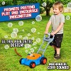 Rev up playtime with the Hot Wheels Bubble-N-Go Mower! This interactive toy is designed for little racers ages 3 and up, providing endless entertainment as they push it around the yard. No batteries required – just fill it up with the included bubble solution, give it a push and watch the bubbles fly. With a vibrant Hot Wheels design and mechanical gear sounds, your child will feel like they're on their very own race track. As they play, kids will be learning and developing responsibility, motor skills and creativity all through active, pretend play. Get ready to race and bubble blast through your backyard!