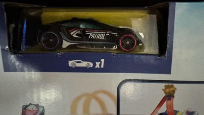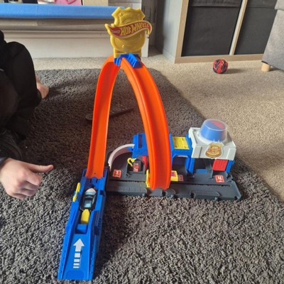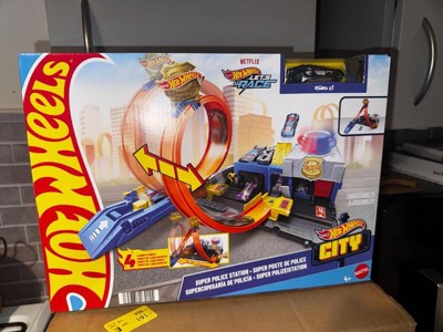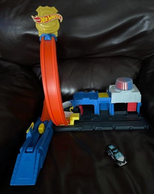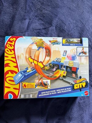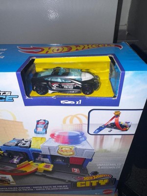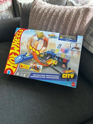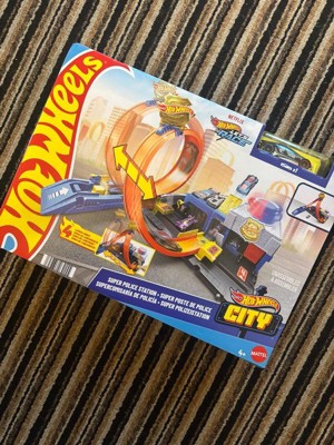 [This review was collected as part of a promotion.] Hot Wheels City Super Police Station There are four different ways to race and stunt through the Hot Wheels City Super Police Station playset with its adjustable track! Drive the included 1:64 scale die-cast toy police car into the launcher where there's a flex hose to refuel before heading into action. Slide the loop-track to one of four paths each one showcases a different stunt or outcome. Park up to four vehicles on the set and attach other tracks and playsets for open-ended play. One car is included; additional vehicles and tracks sold separately.