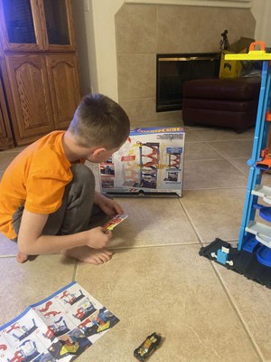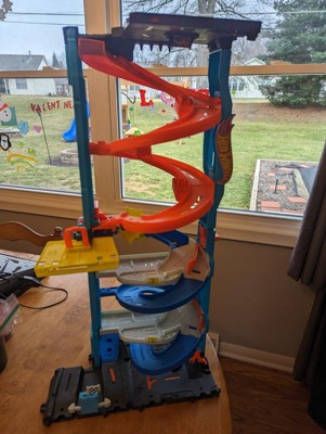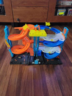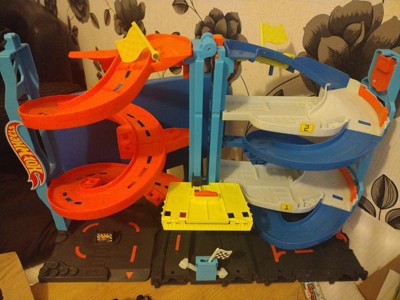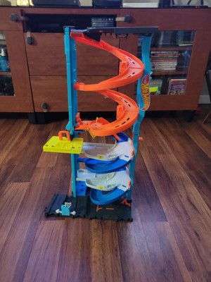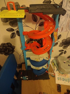 [This review was collected as part of a promotion.] My boys love this hot wheels toy. They got so excited when they saw that you can flip one piece up on top of the other to make one big twisty race track or you can seperate them and have 2. They thought the elevator to kove the cars form the gop to the bottom was so cool. They also liked the fact that other hot wheels city pjeces can connect to this one.