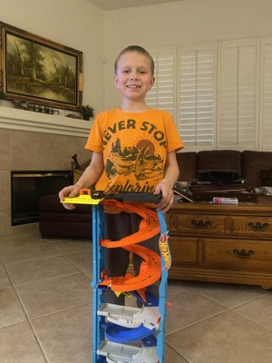 [This review was collected as part of a promotion.] My son absolutely loves this hot wheels set. He loves racing the cars and building the different tracks. The elevator function is great and makes playing and racing easy. I love how easily it flips from two towers to one big tower to give a different dimension of fun It’s very sturdy and robust and has given my sim hours of fun playing with this set.