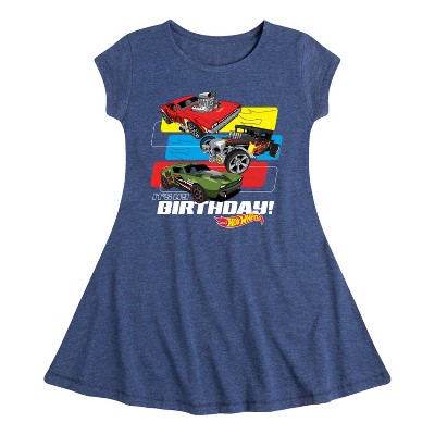Hot Wheels - Going Big For My Birthday - Toddler And Youth Girls Fit And Flare Dress - Speed into bold style with Hot Wheels graphic apparel, featuring high-octane designs that showcase legendary cars like the Twin Mill, Bone Shaker, and other fan favorites. Each piece captures the adrenaline-pumping excitement of epic tracks, jaw-dropping stunts, and non-stop racing action. Perfect for fans of all ages who grew up launching cars off orange tracks and collecting miniature speed machines, this collection brings the thrill of Hot Wheels to your everyday look with energy, nostalgia, and unmistakable style.