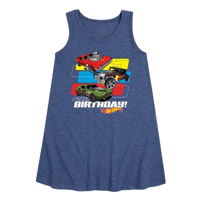Hot Wheels - Going Big For My Birthday - Toddler And Youth Girls A-line Dress - Speed into bold style with Hot Wheels graphic apparel, featuring high-octane designs that showcase legendary cars like the Twin Mill, Bone Shaker, and other fan favorites. Each piece captures the adrenaline-pumping excitement of epic tracks, jaw-dropping stunts, and non-stop racing action. Perfect for fans of all ages who grew up launching cars off orange tracks and collecting miniature speed machines, this collection brings the thrill of Hot Wheels to your everyday look with energy, nostalgia, and unmistakable style.
