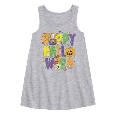 Hot Wheels - Halloween - Just Here For The Candy - Toddler & Youth Girls A-line Dress - Speed into bold style with Hot Wheels graphic apparel, featuring high-octane designs that showcase legendary cars like the Twin Mill, Bone Shaker, and other fan favorites. Each piece captures the adrenaline-pumping excitement of epic tracks, jaw-dropping stunts, and non-stop racing action. Perfect for fans of all ages who grew up launching cars off orange tracks and collecting miniature speed machines, this collection brings the thrill of Hot Wheels to your everyday look with energy, nostalgia, and unmistakable style.