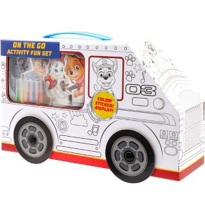 Ignite your child's imagination and creativity with our On The Go Activity Fun Set! Inside this great set, your little artist will discover a world of endless possibilities. Unleash tons of fun as they delve into the creating their own Paw Patrol vehicle design with markers and stickers. Whether at home or on the go, this item is perfect to take anywhere and ensures portable creativity, transforming every moment into an opportunity for artistic expression. Perfect for kids aged 3-12, this set guarantees tons of entertainment, making it an ideal gift for birthdays or any occasion. Spark their joy, unlock their creativity, and let their imagination run wild with our extraordinary adventure set!