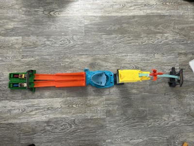 [This review was collected as part of a promotion.] This is a fun, complete small track that checks all the boxes for interactive play - racing, excitement, imagination and an element of luck. It has the same durability I've come to expect from Hot Wheels and it makes for a great gift to any elementary school-aged child. Since it has the racing component, it can be played with more than one person at a time, although my son (age 9) prefers to play alone. My older son (age 11) will play with it as well, but it does not hold his attention for very long. I found the setup to be straightforward and the directions thorough. I am never a fan of assembling but this race track does not have too many stickers or pieces to have to complete. The attachments click into place but a few can be removed, I assume for easy storage. The entire racetrack does hold together very well during play.