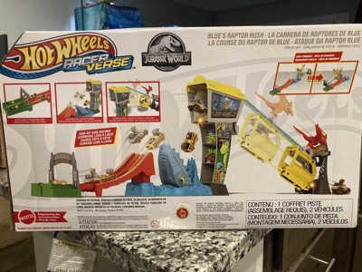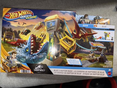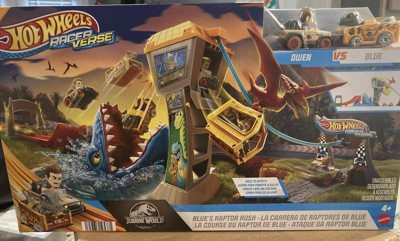- Hot Wheels RacerVerse vehicles Blue the Raptor and Owen face off in a race to escape Jurassic World island.