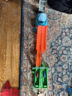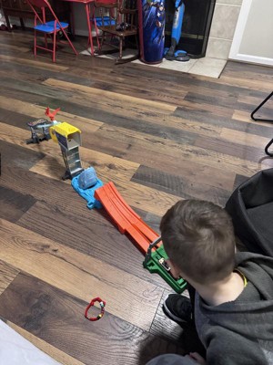 [This review was collected as part of a promotion.] This toy is so much fun. It comes with two cars and they face to make it across. I personally had a blast and my son was going through his hot wheels collection of cars to make them race. This offers hours of fun and we have tied it into our “hot wheels city”.