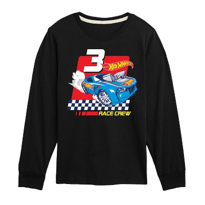 Hot Wheels - Made To Race - Toddler And Youth Long Sleeve Graphic T-Shirt - Speed into bold style with Hot Wheels graphic apparel, featuring high-octane designs that showcase legendary cars like the Twin Mill, Bone Shaker, and other fan favorites. Each piece captures the adrenaline-pumping excitement of epic tracks, jaw-dropping stunts, and non-stop racing action. Perfect for fans of all ages who grew up launching cars off orange tracks and collecting miniature speed machines, this collection brings the thrill of Hot Wheels to your everyday look with energy, nostalgia, and unmistakable style.