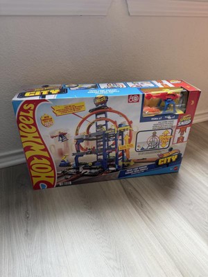 [This review was collected as part of a promotion.] I received the Hot Wheels City Mega Garage Playset with 1 Die-Cast Toy Car & 1 Toy Helicopter in 1:64 Scale to try and review. Before I could even open the box my daughter was already begging to play with this set! It came disassembled so it took about a half hour to set it all up. Once it was assembled the fun began. There's an easy launch on the bottom and it launches a car up around several loops until it stop on top where another car is waiting. This set is 2 feet tall so it's pretty fun and the loops are big. It came with one car and one helicopter. But it can park up to 36 hot wheels cars! So much fun! We took turns launching cars. There's even a car elevator! This toy would keep us entertained for hours! The launch is definitely the most fun part of the set. It wasn't hard to assemble. Just getting the tracks in for the loops took the most time. But it was worth the time. The set isn't heavy but it's sturdy. Built for hours of play! I love this set. And obviously my daughter did too! I'd recommend this set to anyone old or young.