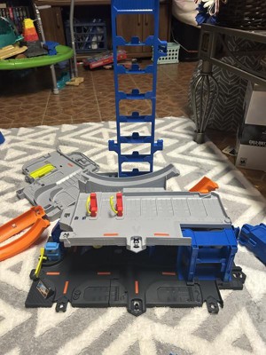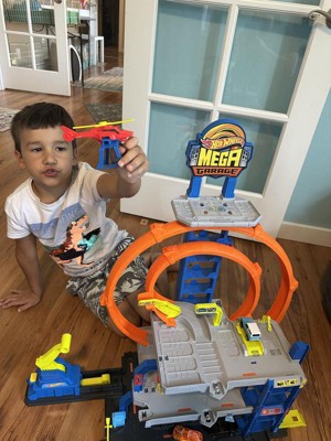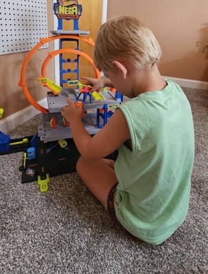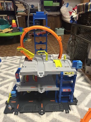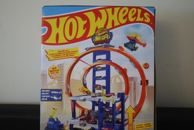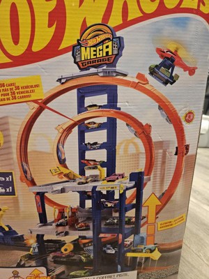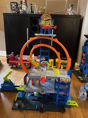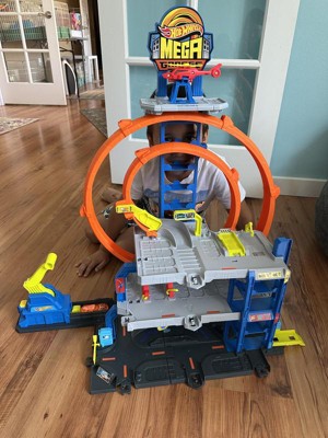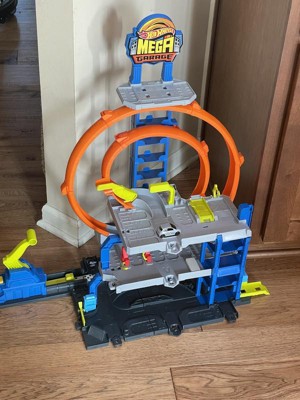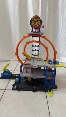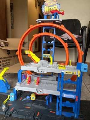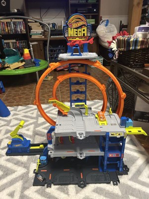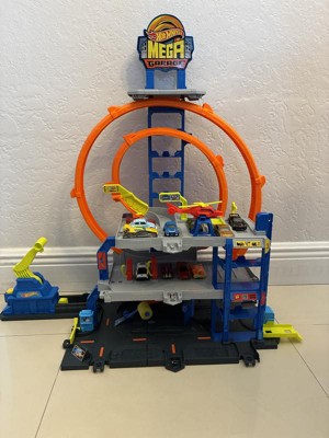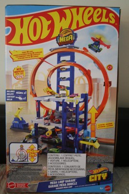 - Explore multiple levels of toy car play with the Hot Wheels Mega Loop Garage playset.
