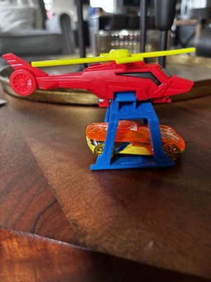 - A 1:64 scale die-cast car and plastic helicopter with car-carrying apparatus are included. Additional vehicles sold separately.
