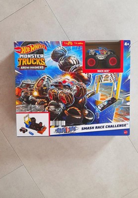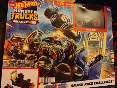 Hot Wheels Monster Trucks Arena Smashers Race Ace Smash Race Challenge Playset with 1:64 Scale Race Ace Toy Truck and 1 Crushable Car