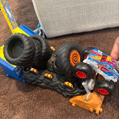 [This review was collected as part of a promotion.] My son loves monster trucks and this one is one of the favourite now to play. The moving and shaking base makes more fun, as it makes a sensory feedback when car smashes and crashes. Child can drive with monster truck into four smash points, knock tyres tower and win. Also can play with other hot wheels cars as it suitable. The set already comes with one car so easy to start to play.