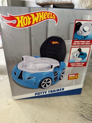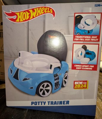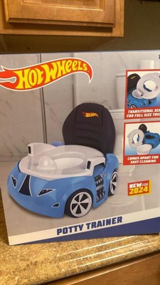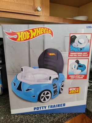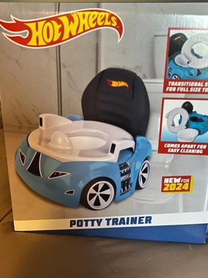 Vroom, vroom! Introducing the Hot Wheels Potty Trainer – the ultimate pit stop for potty training success! The sleek blue race car design will rev your little one's engines as they zoom towards independence. Perfect for kids 12 months and up, the 2-N-1 potty training system includes a training toilet and detachable potty ring for toddlers to use on a full size toilet. Includes a removable pot for easy cleaning and splash guard for less mess, so you can keep it in top gear without the hassle. It's time to hit the fast lane towards big kid status with the Hot Wheels Potty Trainer.